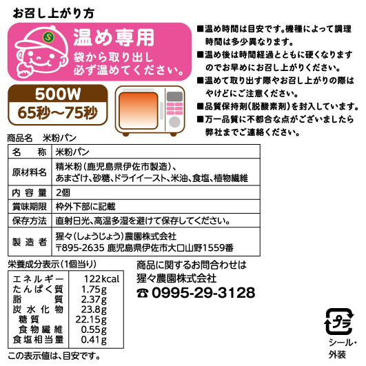 猩々農園の米粉パン【丸パン2個入×5袋】(4セット〜)
