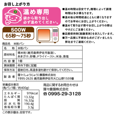 猩々農園の米粉パン【角パン1個入】(1〜5個)